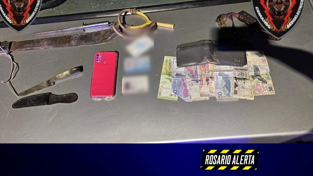 Durante la detención secuestraron un machete de 60 cm, un cuchillo de 22 cm, una gomera, una chaira, documentación personal, un celular y el vehículo involucrado.